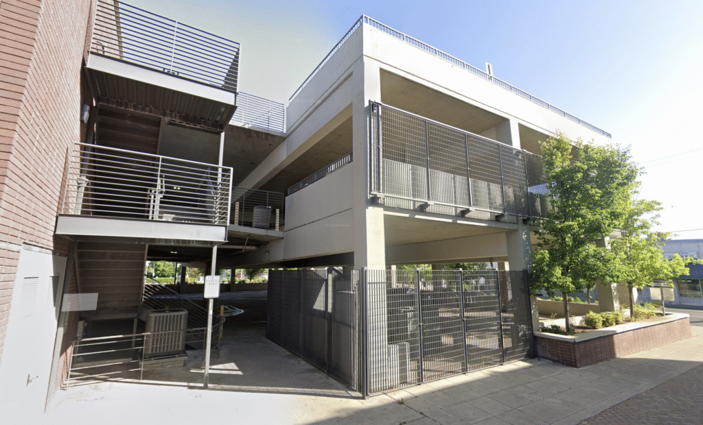 The structure integrates thoughtfully into the downtown streetscape, with architectural details and materials that complement the surrounding commercial district. The design balances functional parking needs with aesthetic considerations, creating a facility that enhances rather than detracts from the urban environment.